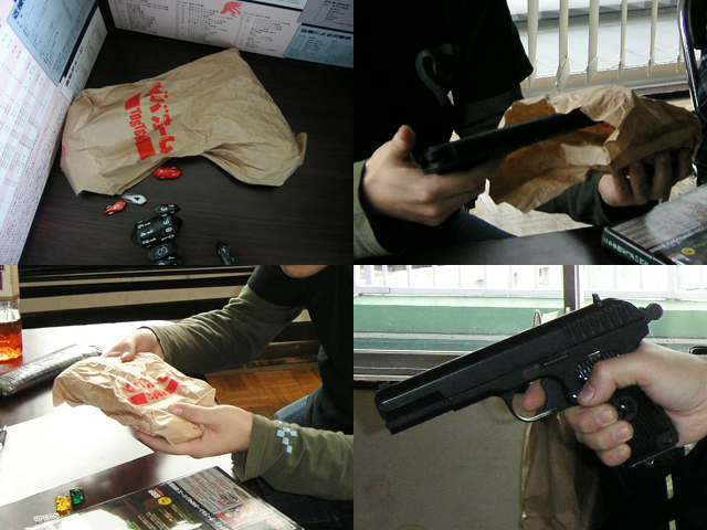 K「すると、その様子を見ていたであろう人影が言います。『そう、モデルガンです。ご存じですか? トカレフTT33。重たいでしょう? 本物みたいでしょう? もちろん本物です』」