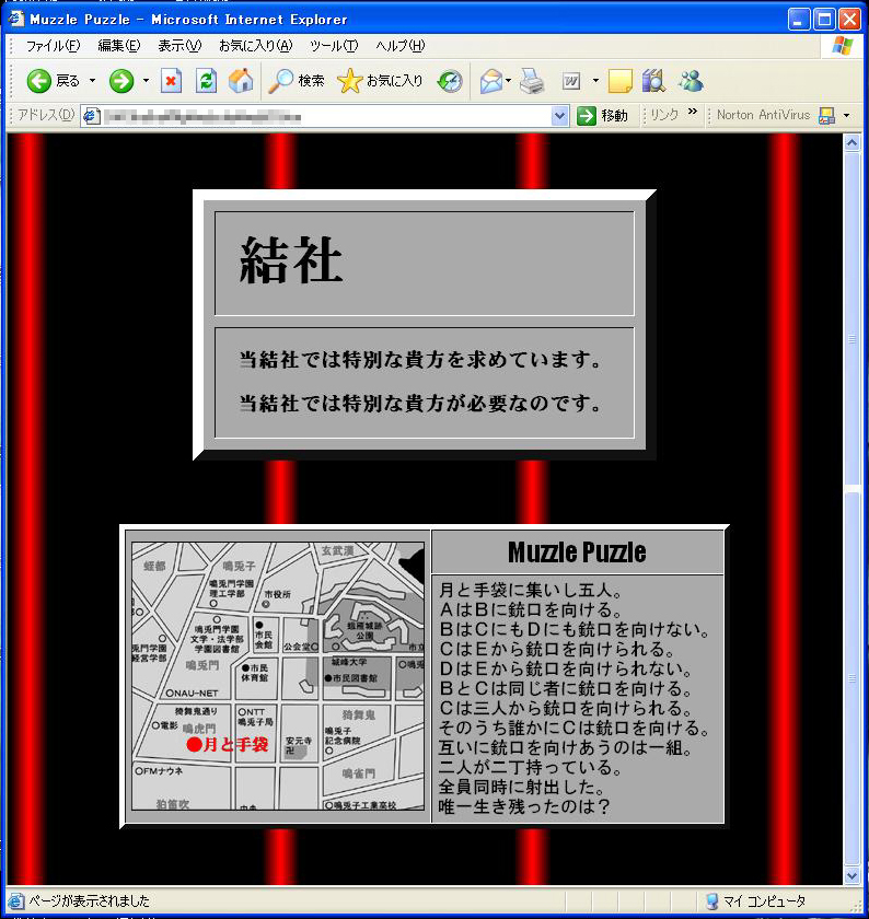 神保「でも、『パスワードを忘れた方は』って、この文章が出てきて、で、迷路の赤文字が書いてあるほうが表だとするならば、重ねた時点で『表に晒されるとは限らない』の意味が、こういうことかって判りそうな気もするんだけど、そうじゃないってことか」